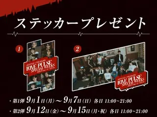 您还可以欣赏专辑“LOVE PULSE”中的歌曲。EVENT2 贴纸赠送时间:1st:9月1日(星期一)至9月7日(星期日)
