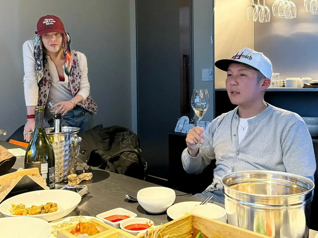 我添加了标签。公开的照片中,G-DRAGON身穿修身T恤和花背心,戴着帽子和围巾,与搞笑艺人赵世镐一起喝酒。
