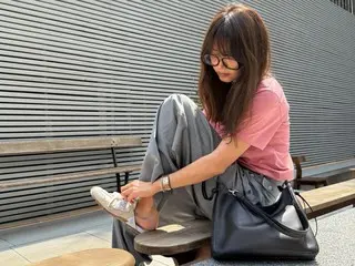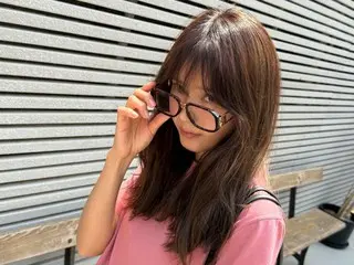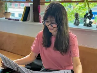 已发布。照片中,崔贞在阳光下微笑着看着镜头,同时还在看报纸。粉色T恤和黑色