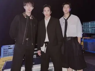 照片中,CNBLUE三位成员身着T恤和时尚舞台服装。