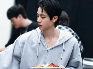 JIN吃饭时平静的表情和紧握麦克风的手给人留下了深刻的印象。