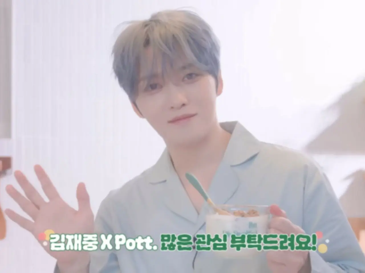 题为“金智俊最棒的Pott.单品是什么?”的视频已公开。视频中,金智俊身穿白色T恤和浅绿色睡衣。