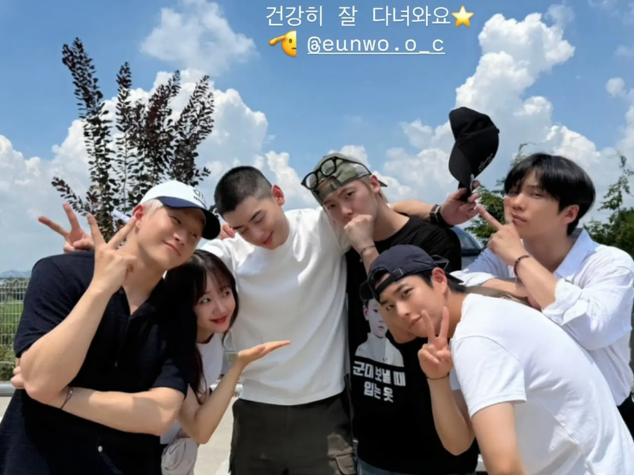 这天,“ASTRO”成员和崔有贞一起送别了入伍的车银优。