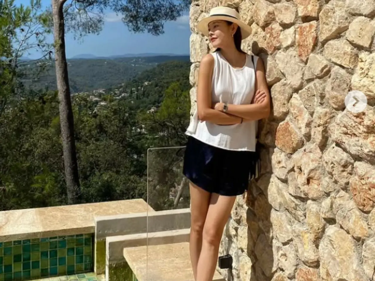 照片中,韩惠珍正在法国旅行,身穿背心和短裤,展现清凉造型。