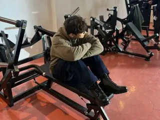 照片中,徐仁国身着连帽衫和牛仔裤的休闲装扮。徐仁国摆出各种姿势自拍,还使用健身器材。