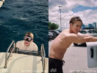 照片中捕捉了两人的自然瞬间,包括S.COUPS在海里玩耍的样子,以及珉奎脱下外套害羞微笑的照片。
