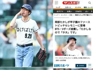 V上个月26日(韩国时间)在美国洛杉矶道奇体育场投出第一球,引发了全世界的关注,日本也不例外。