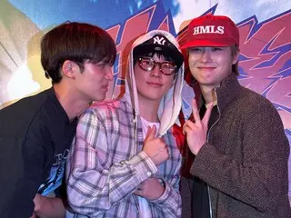 公开的照片中,有与正在服兵役的“SEVENTEEN”成员圆宇、“X1”成员WOODZ(曹承衍)的三人照,