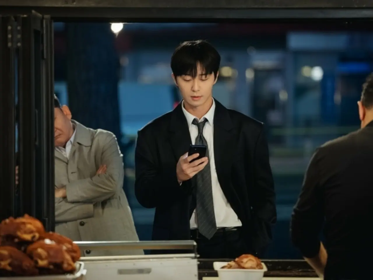 剧中李庆道下班的场景,略微松开的领带,凸显了角色成熟的性感。