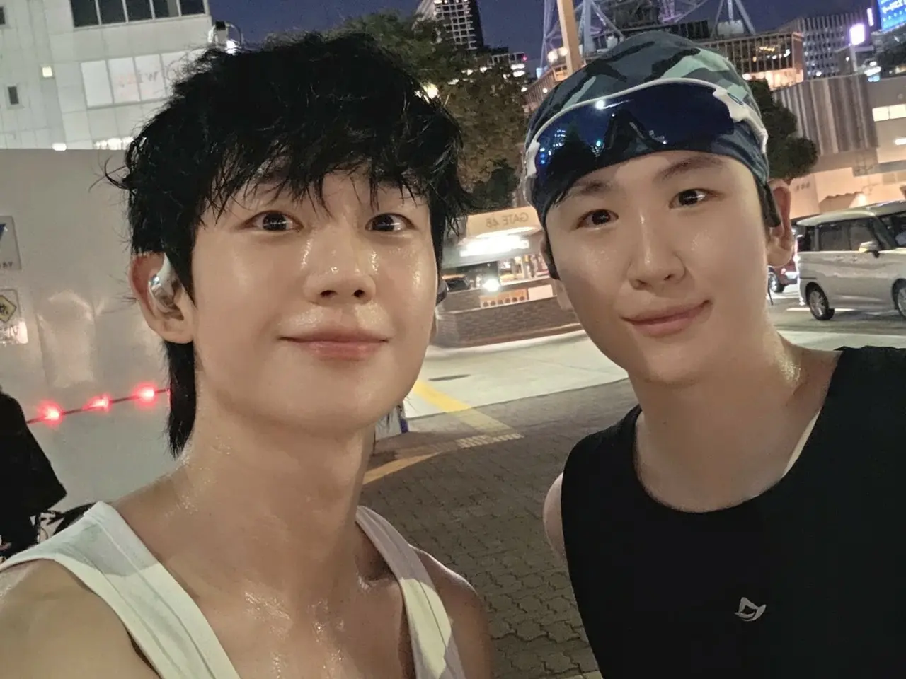 演员丁海寅与弟弟在名古屋夜跑...弟弟公开两人合影